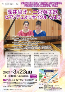はじめは、大学主催の演奏会や、アウトリーチで子どもたちへの演奏から始まった私たちのピアノ連弾でしたが、深井・二宮ピアノデュオとして、一般のお客様を対象にしたリサイタルも回を重ねております。