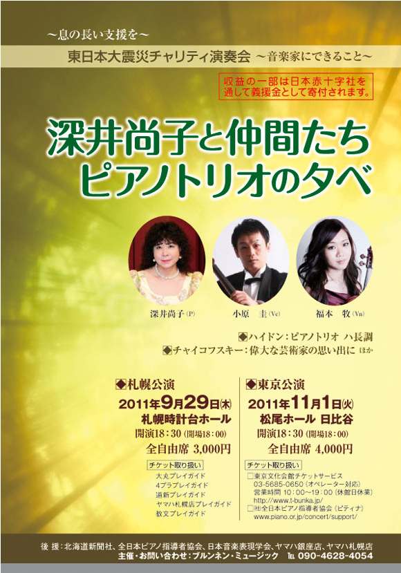 東日本大震災チャリティー演奏会~音楽家にできること~ 深井尚子と仲間たち ピアノトリオの夕べ