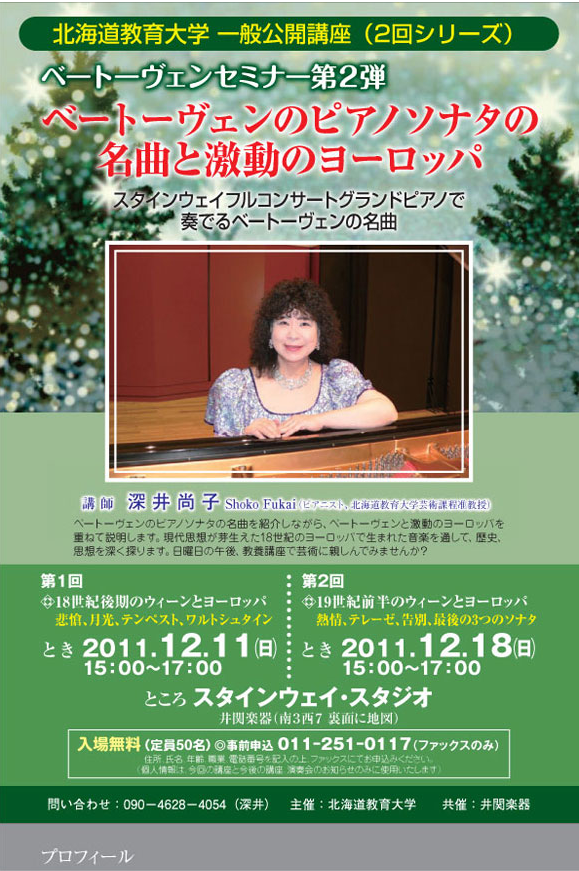 北海道教育大学 一般公開講座(2回シリーズ)ベートーヴェンセミナー第2弾